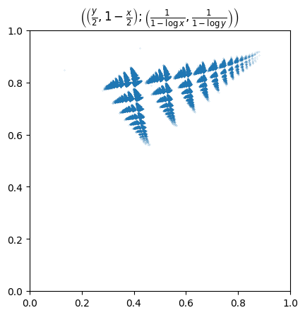 - Take two moderately interesting functions that map the unit square to itself; for example, \[(x,y) \rightarrow \left(1-y^2, \sqrt{x}\right)\] and \[(x,y) \rightarrow \left(\frac{x+y}{2}, x\right)\].